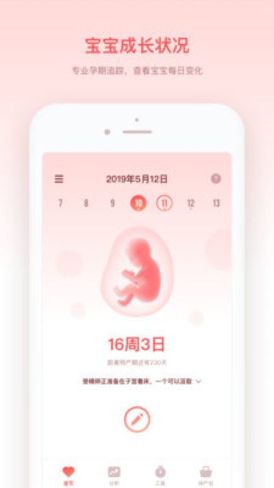 专业孕期追踪,随时查看胎儿天数,计算宝宝出世的时间
