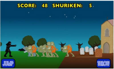 僵尸忍者大战是一款跑酷游戏,游戏把跑酷和动作格斗结合在一起,很考验玩家的敏捷和反应。玩家在游戏中需要控制忍者向前奔跑并击杀来犯的僵尸。