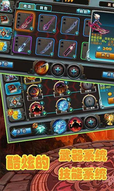 1、全新技能连招系统,一键释放3个技能,任意组合,配合华丽的技能特效,带来无与伦比的超爽打击体验