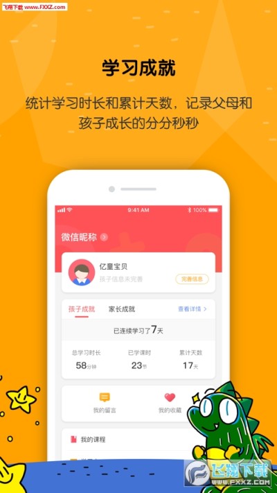 1、可以通过app完成课程打卡以及查看家长圈动态;