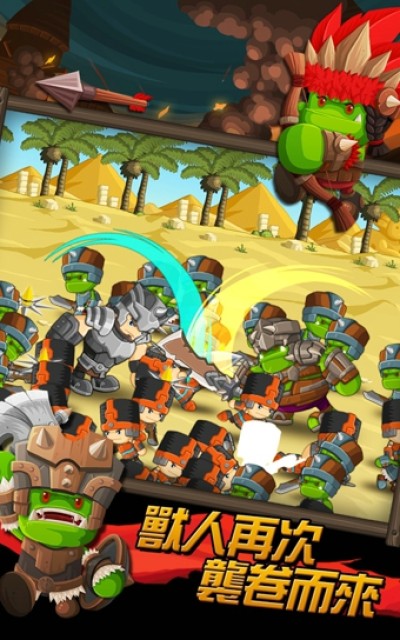 兽人士兵有四种兵种,分别为刀兵、斧兵、枪兵和弓兵(新兵种),另外还有6种神秘兵种,各个兵种之间互相相克,士兵可以提升等级,等级越高能力越强;兽人英雄可以对生命力、攻击力、防御力、移动速度、带兵数量来进行升级,能力越强威力越大。