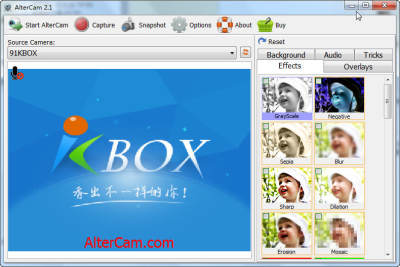 AlterCam 是一个灵敏的摄像头特效软件,通过这个软件你能借助普通的电脑摄像头实现一些特殊效果,比如浮雕、虚化、添加文字等效果,让你的视频与众不同。