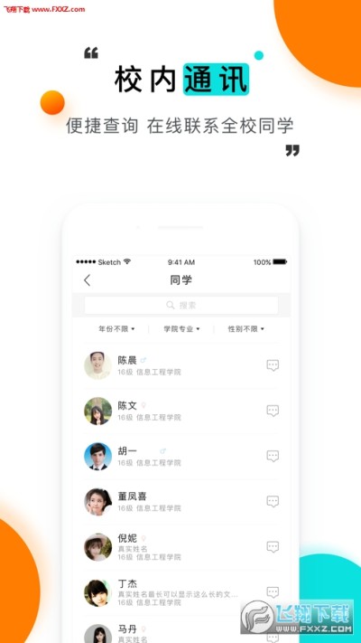 可以找到全校同学的校内通讯录,按院系、年级、学号查找,在线私信更方便