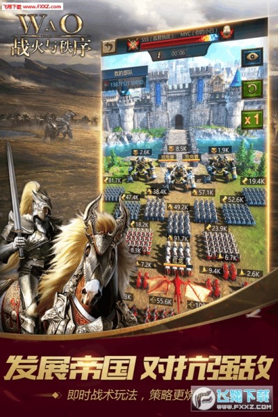 即时战略是《战火与秩序(WAO)》的一大特色,战争不再是派兵那一刻就决定的结果,而是中途可以无限支援的真实战斗。小规模的战争尤为如此,大规模的战争更是充满了策略和挑战。战斗战术上的空城诱兵、无限协防,外交策略上的远交近攻等等。安卓区即将开始的第一场王城争夺战,将为玩家呈现一场热血沸腾的史诗之战。