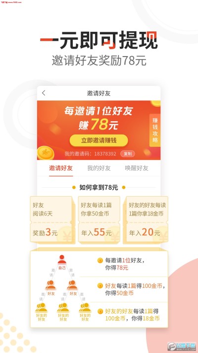 4、每邀请1位好友,即可获得金币奖励。好友阅读得到金币,你也可以获得额外金币奖励