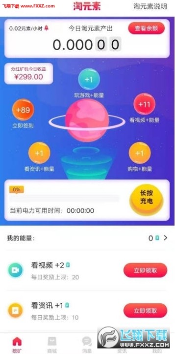 2、矿机需要能量充电才能挖矿,挖矿一天需要48能量,玩家每天都可以通过看签到、看视频、看资讯和购物返利赚能量。建议一次性赚多一点能量,下次直接点充电就很方便。