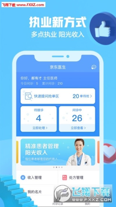 京东医生app是一款针对医生打造的在线问诊服务平台,这款软件可以为用户提供在线患者管理服务,不用面对病人就能在线看诊等等!
