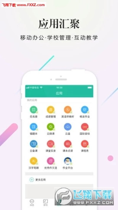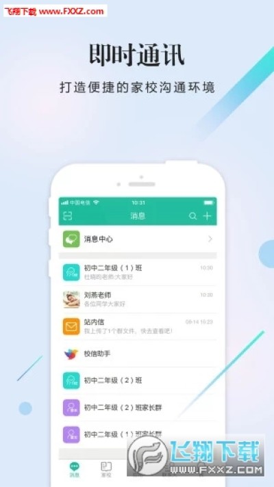 校信全面涵盖教育体系下的各类应用,同时提供专业且完善的业务支持,内置IM服务、班级圈、作业、家校通知等应用,帮助学校快速建设数字校园平台。校信通过即时通讯服务打造便捷的家校沟通环境;通过班级圈实现资源的动态分享、优质推荐、成果展示,形成以教师、学生、家长互动的家校互动社区,更有个人空间、班级空间展示。同时对接开放式应用商店,整合内部应用及第三方应用,涵盖家校沟通、办公管理、在线学习、数字资源、教务教学等丰富内容,协助学校建设统一移动端门户,实现校园沟通、办公、教学等各种业务需求,为用户提供更加便捷全面的服务。