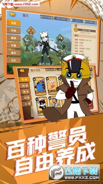 1.上百种具有不同能力的黑猫警员们等你召集,培养打造最强警队。