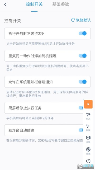 ^点击悬浮窗内的录制按钮,开启录制后在屏幕上完成自己需要的操作后,点击完成录制即可在当前任务中添加之前录制的动作。