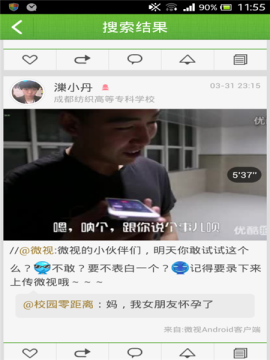 这款校园微视是专为大学生朋友准备的一款手机应用软件,其通过视频与社交为广大学子们提供了一个学习、就业、交友、情感和玩乐的五彩校园,是现代大学生的必备神器!