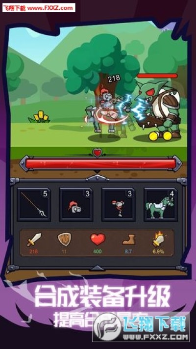 -轻松休闲的游戏风格,简单的操作闯关玩法,收集合成不同的武器来战斗;