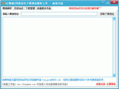 音乐地址解析器(dj网歌曲解析工具)是一款功能非常强大的音乐地址解析工具,该软件支持40多个站点,支持现在所有流行音乐及dj网站的歌曲地址解析。