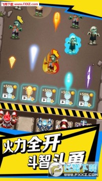 爆打小僵尸官方版是一款卡通风格的休闲益智类手游,玩家需要放置炮塔来抵御源源不断进攻的僵尸,获取金币来不但升级自己的炮塔,每个炮塔都有不同的升级方向,玩家可以直接的搭配应对变强的敌人!