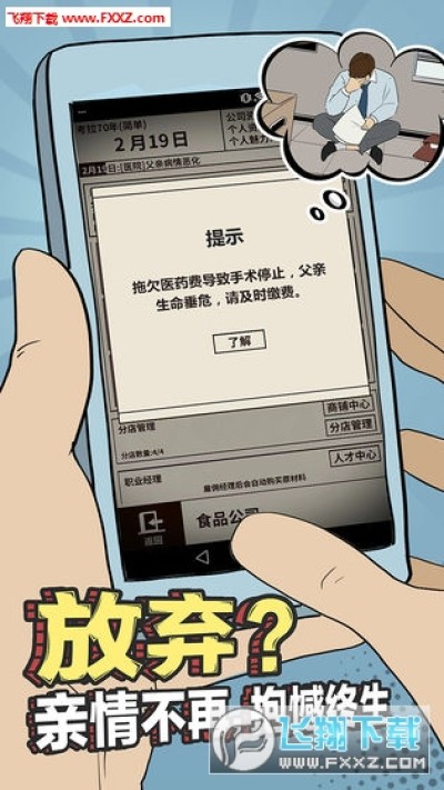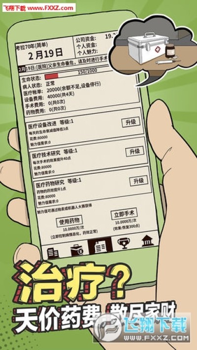 爸爸活下去破解版免广告》是一款经营模拟类的游戏,简单的文字题材内容,魔性的玩法,不断经营你的公司,赚取金钱来拯救生病的父亲,多种玩法策略内容,更多精彩等你来体验,赶快下载吧!