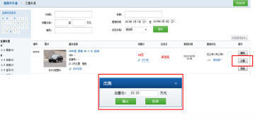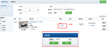 点击销售中车源预售价格下的改价格,显示价格修改界面,填写价格并确认。