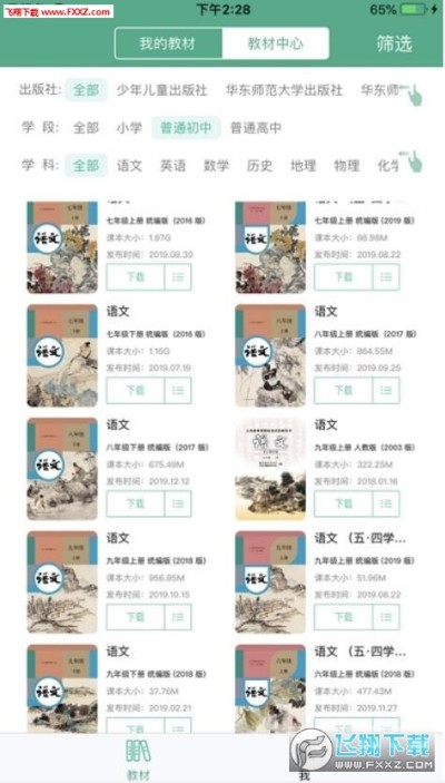 2、三大类筛选,从科目、学段和出版社能帮用户一秒找到对的课本。