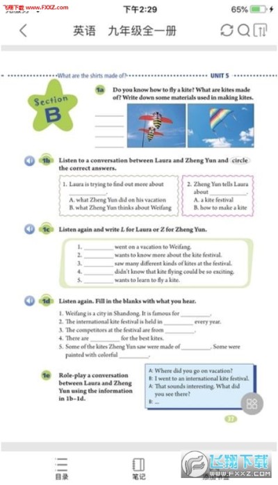 3、全屏显示课本内容,用户可以自手机上记笔记,添加书签。