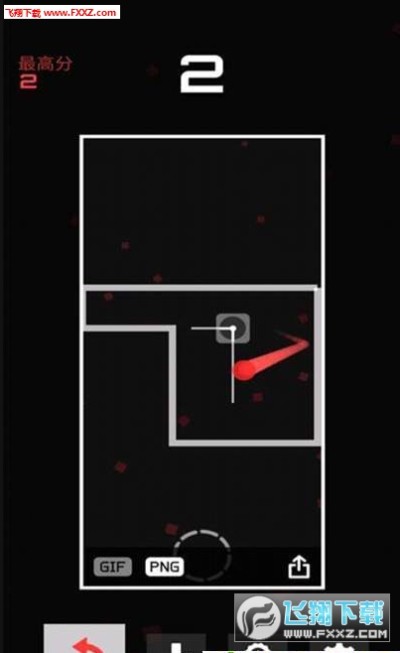 小球撞到板块延伸出来的线条时,游戏将会结束。