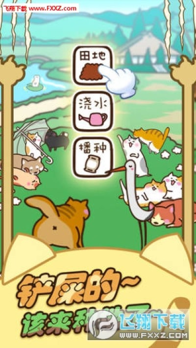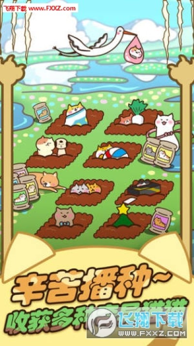 种下猫咪种子将会长出猫咪来的神奇田园猫咪田园。让我们一起来悠闲地种喵星人吧~不要忘了浇水哦!猫咪成长后偶尔会有朋友到访哦!给朋友食物的话,你将会得到意想不到的礼物!放置型猫咪饲养(栽培)游戏在商店里购买种子,然后种到田里就会发芽。猫咪放养着也会自然生长。就是这么简单! ?偶尔浇水土地干涸的话,猫咪会停止生长。另外,好不容易到来的朋友也可能因为土地干涸而离开。所以一定要记得经常浇水哦!