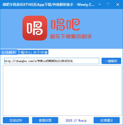 唱吧手机KTV社区App音乐外链下载解析助手是一款简单易于使用的唱吧解析下载软件。该软件专门用于解析唱吧手机KTV的各种独唱的外链进行引用及下载,大家一起来唱吧。