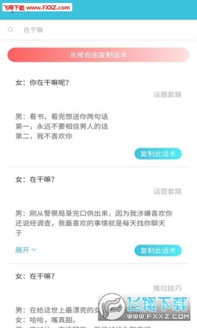 1、内置25W+聊天话术,只要复制粘贴就能把女生追到手