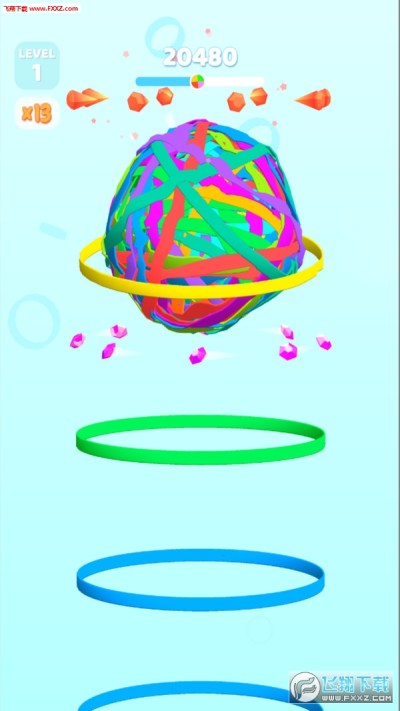 2、玩家通过皮筋来进行弹射,如果能够圈住游戏界面上方的球,既可计算分数,越多分越高。