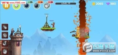 2、操作简单易上手,点击屏幕中的弹射器,向敌人投掷石块或是炸弹,通过升级还能加强威力;