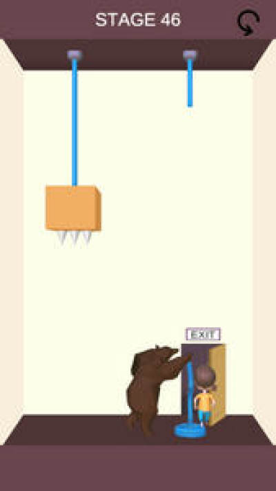 1、用手指轻扫绳索并进行切割,救熊孩子逃出房间;