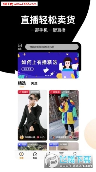 有播app是一款手机直播购物平台,这款软件可以为用户提供在线直播带货的功能,在手机上可以在线申请成为主播带货,也能看直播购物等等,快来试试吧!