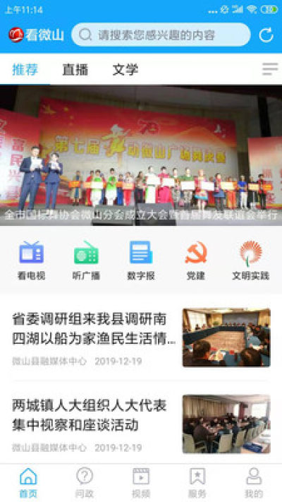 看微山app是一款微山县的手机融媒体新闻互联网客户端,这款软件可以为各位用户提供微山本地的新闻资讯,在手机上可以看新闻、直播、广播等等,看微山app上有新闻、政务、生活方面的服务哦!