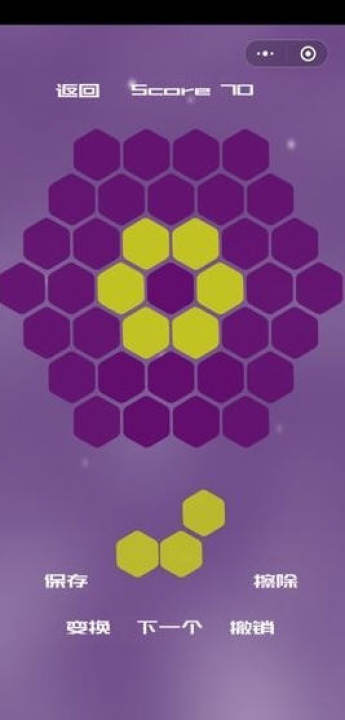 【六角消消】使不同的方块从上方掉落至六边形,进而消除同色三个方块,难度指数五颗星;
