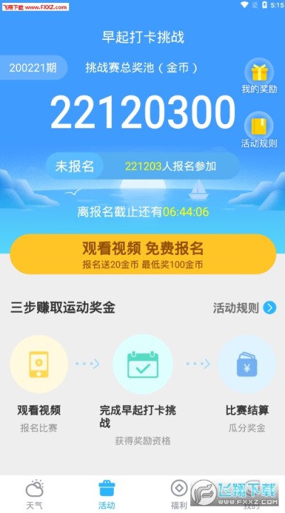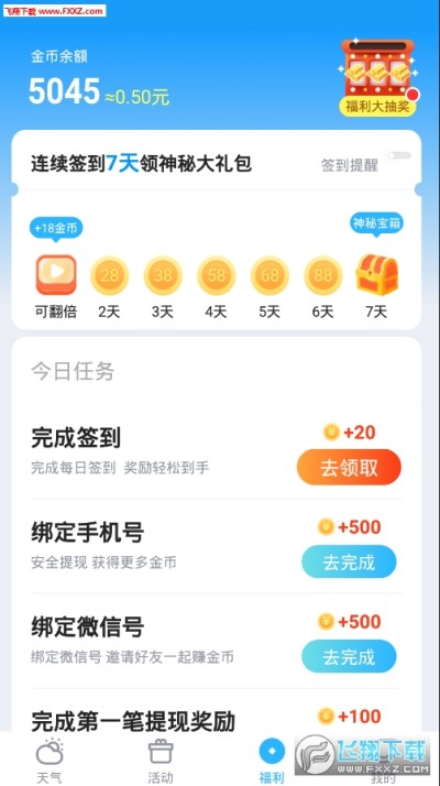 简单天气红包版app是一个可以看天气信息,还可以赚钱的软件哦,每天关注到最新的天气信息之余,做做任务赚钱,各种打卡任务,以及看视频等,都是奖励金币的,而且满1元就可以提现,每天都可以提现一次,有需要就下载简单天气红包版app体验吧。