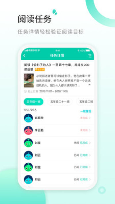 1.上线了全新的伴读计划功能。教师可通过发布伴读计划,让学生参与到整本书的阅读学习中,在“导读、检测、反思”三位一体的阅读体系流程指导下,有效指导学生进行整本书阅读。2.在首页增加了班级管理功能,教师可为管理班级的学生批量重置密码。3.在首页增加了测评图书列表,汇总了书城有题图书。4.在首页增设阅读分析功能入口和消息入口,方便教师查看。5.下架了教师端“每日一读”功能。