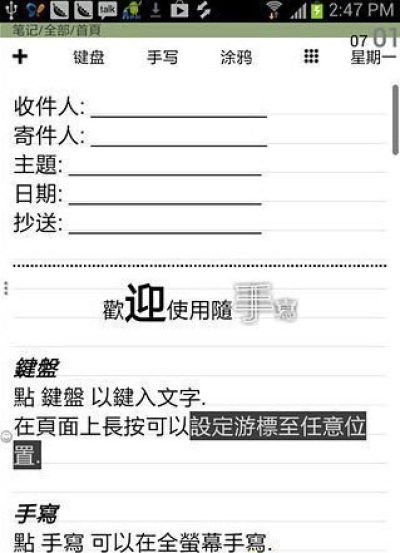 随手写是当前市场上唯一一款支持手写键盘混输的软件,也是安卓平台上最流行的APP之一。大家可以通过它在照片上随意的自由涂鸦、插图、拍照记事和语音记事,允许自由设定桌面小窗口的背景图案、颜色和透明度,是大家生活中一个不可多得的小帮手!