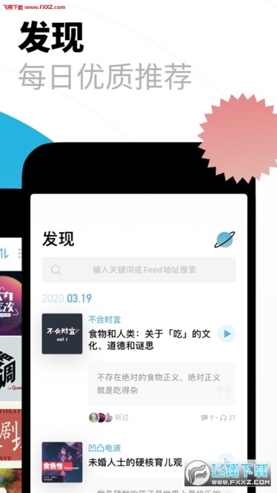 小宇宙 App是为播客而生的产品。播客听众值得一个更好的选择,我们总觉得能做点什么。界面特别清新,比其它APP界面简洁,可以根据听到哪一段进行评论,评论区有很多令人感同身受的观点。