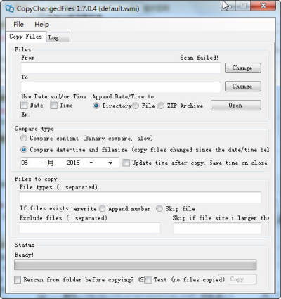 电脑档案要进行备份,才能万无一失,备份的档案要是小通常记得时还会备份,但若是碰到要备份的档案多且大,就算记得时,也要花不少的时间才能备份完成,若有上述的困恼时,可以来试试这套 Copy Changed Files 免费的档案差异备份工具,简单实用,其备份档案时,可选择比对方式,Copy Changed Files 提供档案日期及大小或是档案内容(较慢)两种比对方式,也可筛选要备份的档案类型,另外针对比对出重複的档案时,亦提供覆盖、原档案增加数字及略过不複製的三种处理方式。