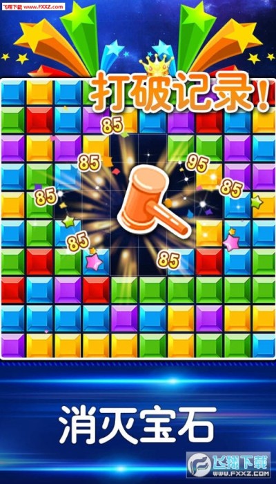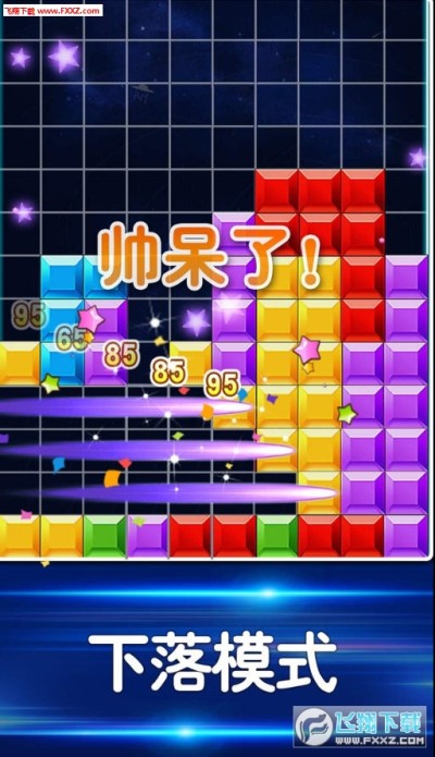 4、消除模式:过关玩法,消除1010方块宫格中3个及以上相同颜色叠在一起的俄罗斯方块,达到目标分即可通关