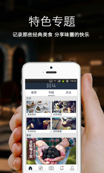 因味是一款吃货必备app应用,是专属于你的美食日记。最原汁原味的美食分享,您可以在这里品尝味道的喜悦,分享味蕾的快乐!