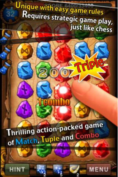 你可以通过多次移动,将同色符文预先移到一起,最后再加一个来进行消除。最狠的就是横竖都排上4,5个,中间空一个,然后从斜45度移动一个过来,就可以造成超帅的消除。