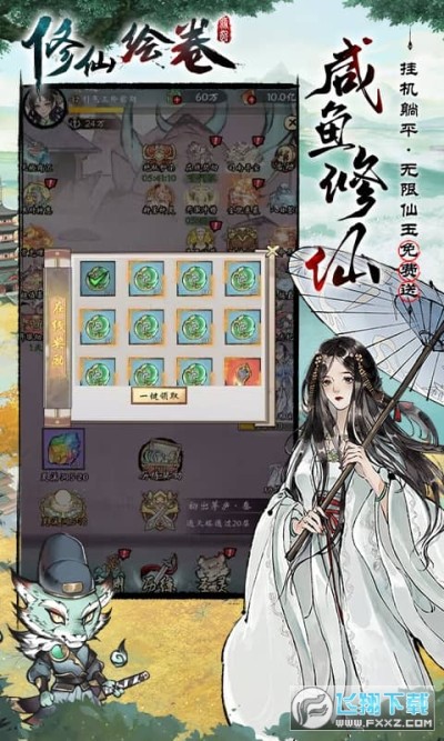 《修仙绘卷》是一款复古水墨风的放置类修仙卡牌游戏。故事讲述姜子牙封神之后,各星归位,道祖以众仙之元灵造元神天诏令,以安天命。但有人行逆天之举,盗取元神天诏令,以仙之元灵为祸四方。仙界众圣被因果所缠,不得安宁,特遣各位天机星轮回入世,进入绘卷的世界,收集散落于各方的圣灵,寻回元神天诏令,以镇乾坤。