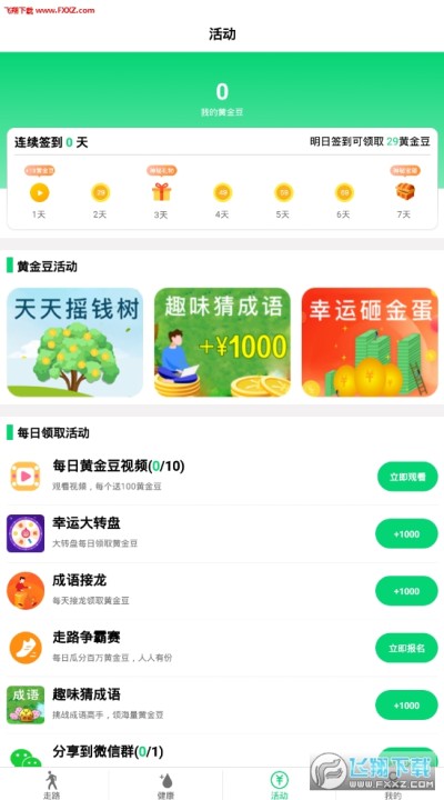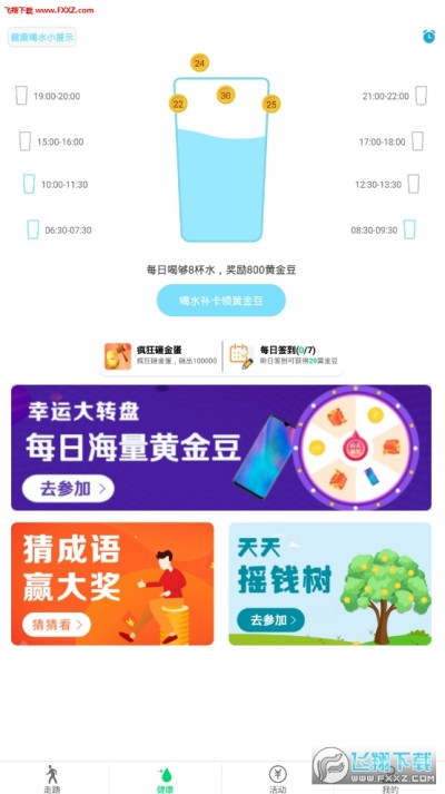 能够记录每日运动步数、运动路程、运动时间和消耗卡路里数,还提供一些有趣的互动活动,例如3000步达标赛,5000步挑战赛,所有的趣味活动都奖励给您黄金豆,您可以通过黄金豆来了解自己参与度,并且可以和全平台用户比拼健康活跃度!让全民都运动健康起来!