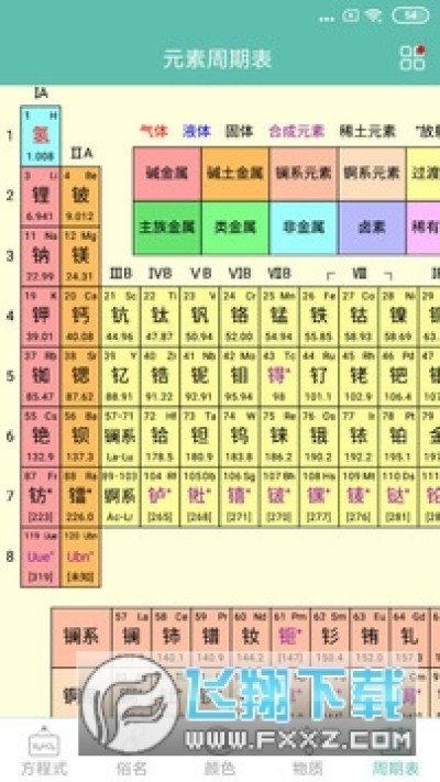 化学方程式软件包含方程式、俗称、颜色、性质与周期表五大模块。