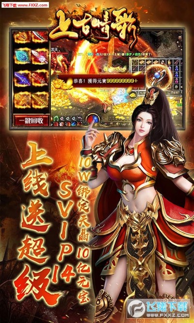 上古情歌是一款复古传奇RPG手游,玩家上线就送超级SVIP14海量特权哦!游戏完美复刻了传奇端游的玩法,超高的游戏爆率,超高的游戏攻速,享受极致的PK快感!