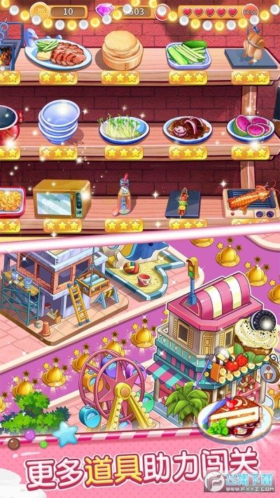 运用时间管理技能,成就连锁餐厅大亨。从蛋糕店,到汉堡屋,再到五星级餐厅 - 用独特的烹饪技能和菜谱特色,直达成功巅峰。沿途赢取金币和金卡解锁新餐馆旅行加美食,体验异域风情!