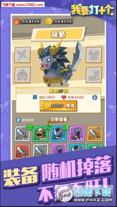 4.闯关过程中会有随机装备掉落,击杀怪物还能让角色获取经验升级。