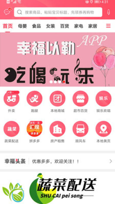 幸福以勒是一款为以勒人提供便民,快捷生活服务类的app,提供有外卖、团购、拼团、本地商城、日用百货、招聘求职、二手交易等服务。