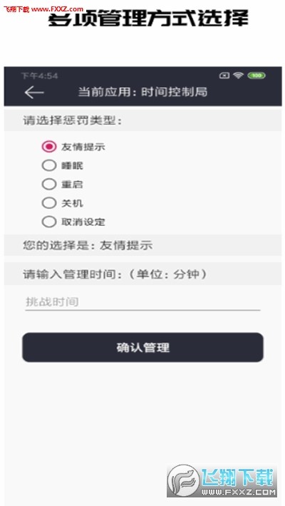 除了单纯的发送友情提示之外,用户还可以选择睡眠、重启、关机等惩罚手段。