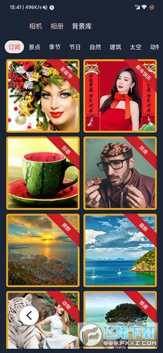 4、大量精美贴纸及背景素材,帮您移花接木神奇旅行。