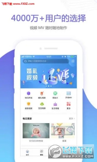 婚贝视频-在线视频制作平台,快速上传照片和视频,即可制作精美视频,丰富的模板库让视频小白在几分钟内直接上手操作,支持一键分享朋友圈和现场大屏幕播放